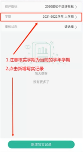 4、注意确认当前学年学期是否正确-点击下方新增写实记录