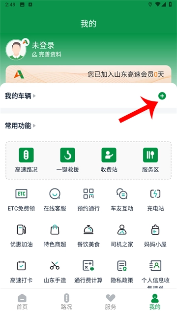 打开山东高速智慧出行应用的主界面后,找到并点击界面右下方的“我的”选项。