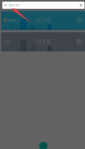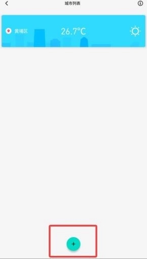 3、选择底部添加按钮,启动城市搜索与定位功能。