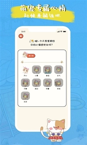 1、《萌小喵日记》是一款以收集猫咪、解锁日记心情为核心玩法的趣味日记类软件。
