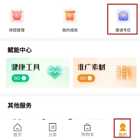 4.将赋能中心里的【健康工具】或者【推广素材】分享给好友;
