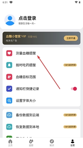 2、选择【测量血糖提醒】