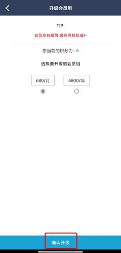 2、用户积累到一定积分后,即可升级会员,届时点击确认升级按钮即可。