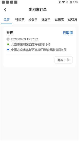 7、进入个人中心的出租车订单页面,你能够随时查看自己的出行订单情况。
