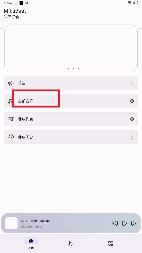进入首页后,点击全部音乐