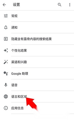 进入设置界面后,点击下方的语言和区域选项