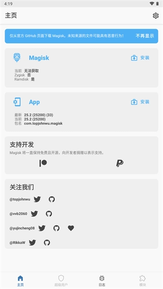 MagiskManager:这个实际上只是一款用于授权的APK,它的功能是在手机刷入面具补丁的过程中发挥作用。