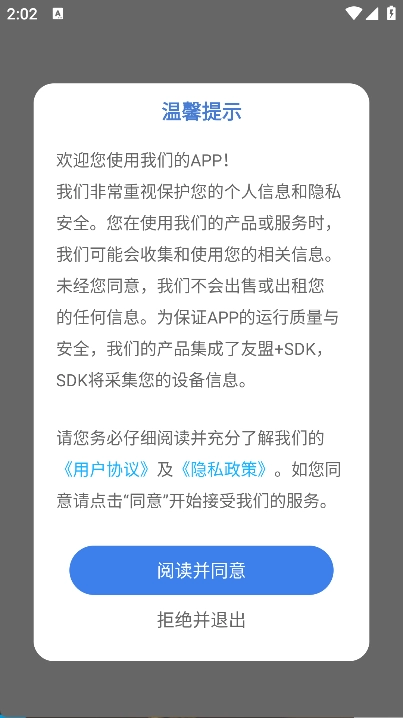 并安装,点击阅读并同意,即可进入主页面;