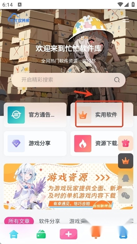 用户们点击“实用软件”板块,从中挑选一些实用的软件资源来打开使用。