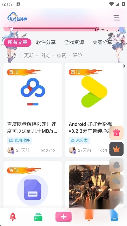 丰富的软件资源库:整合了海量实用软件、游戏资源、修图工具、网赚教程等,覆盖学习、娱乐、图像处理等多个范畴,像追番工具、漫画阅读应用等;此外还有流量卡专业测评、优质卡品汇总等实用内容,给用户带来多元化的资源挑选空间。