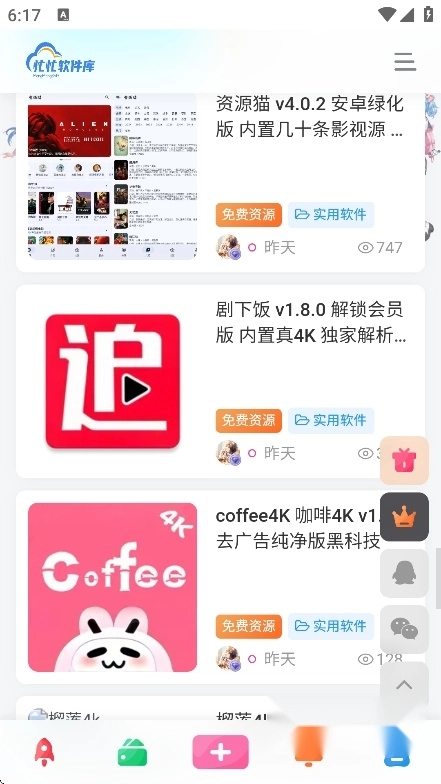 附加内容丰富实用:除软件资源外,还涵盖流量卡评测、网赚教程等实用内容,拓宽了应用的使用场景,为用户带来更多附加价值。