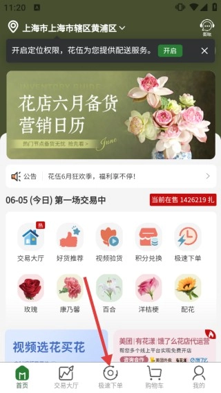 在首页,点击底部的【极速下单】按钮,即可进入极速下单页面。