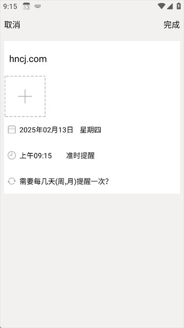 根据需求输入提醒和记事信息,点击完成即可
