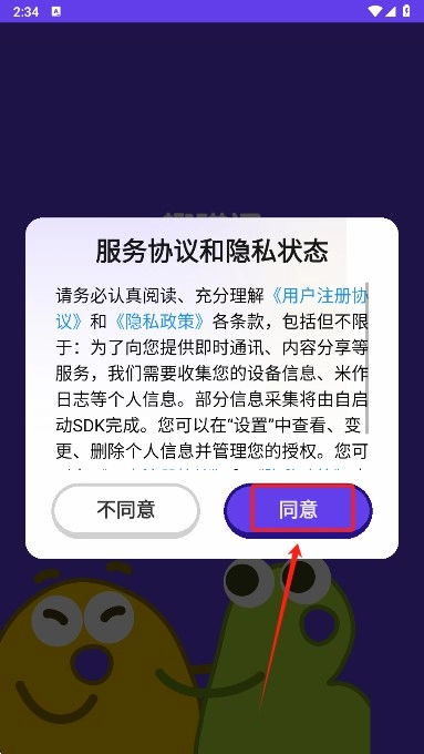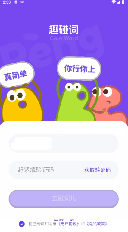 打开趣碰词应用后,请阅读并同意相关的隐私权限条款,以便继续使用该应用。