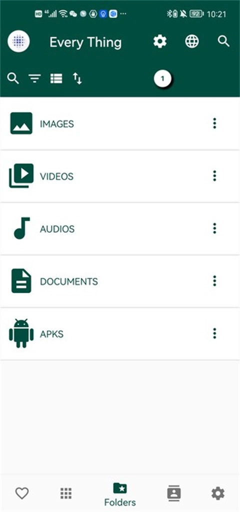 最后要介绍的是EveryThing的搜索功能,只需点击搜索图标,就能快速找到手机里的各类应用和文件。