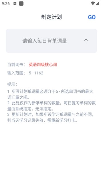 用户还能够在要背单词中制定一个要背单词的数量。