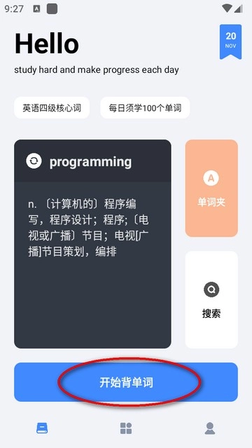 点击【开始背单词】按键即可开始记忆单词。