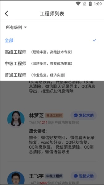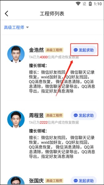 选择工程师,然后发起求助即可。