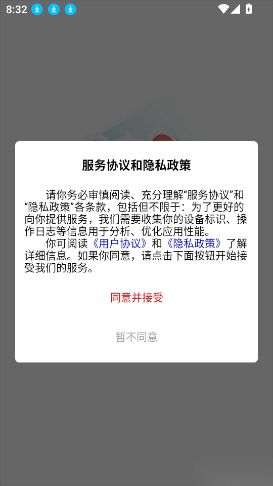 首先打开应用点击“同意并接受”按钮来进入中。