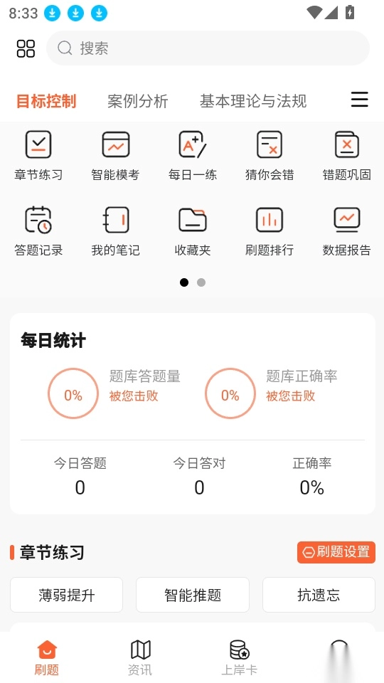进入软件的刷题界面后,在底部菜单栏点击“资讯”按钮即可开展下一步操作。