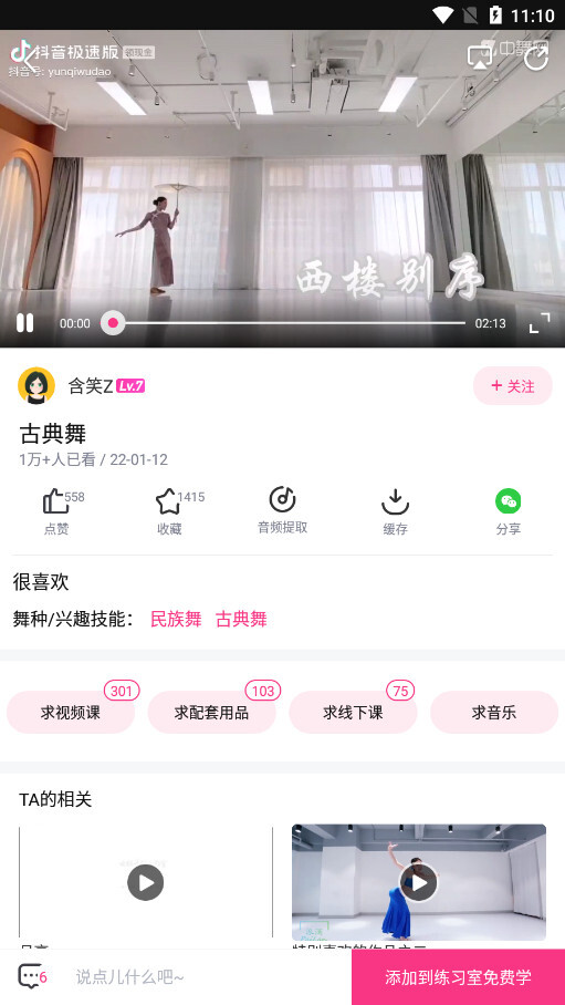 镜像、慢放、区间循环播放、音频提取、翻跳翻拍等功能,能帮你轻松扒舞学舞,手机本地视频也能使用这些功能。