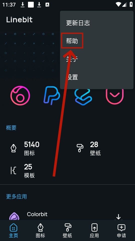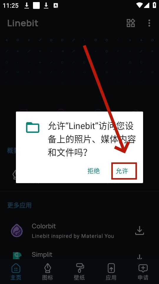 安装并打开linebit图标包,点击允许
