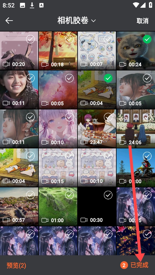 从手机里选一段视频,确定好后点击“已完成”就能继续下一步操作了。