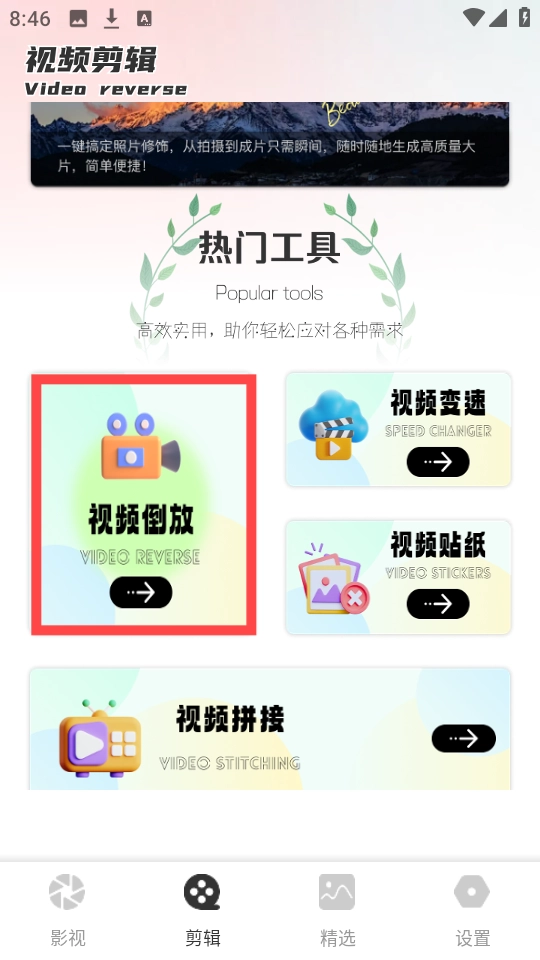 选择“视频倒放”功能选项,首次使用该功能时,需要授予相关权限,这样才能确保功能正常运行。