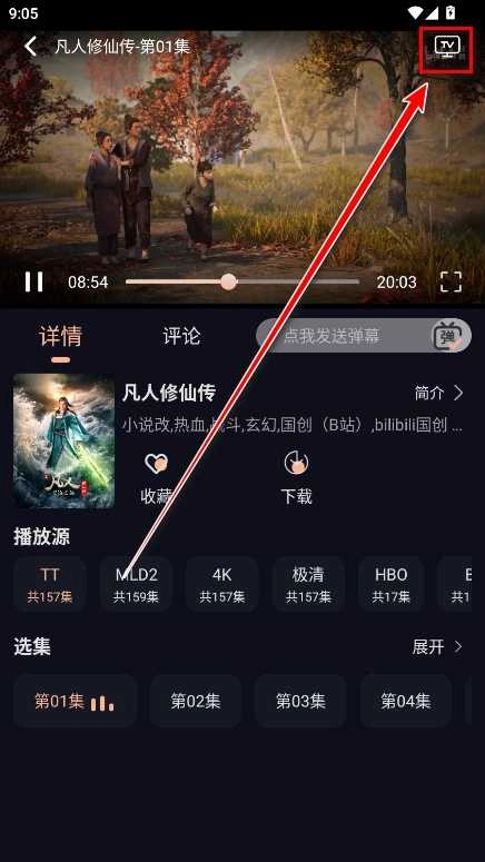 点击小编用红色箭头指向的的tv投屏符号。