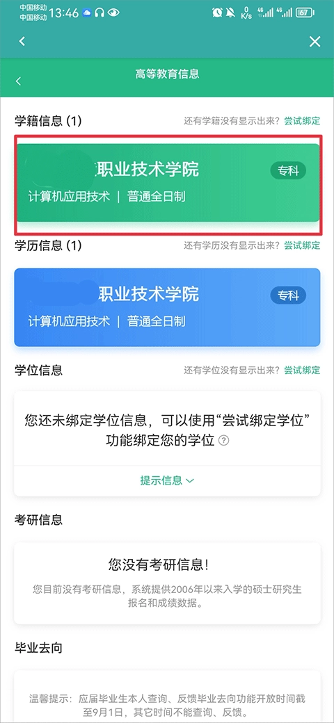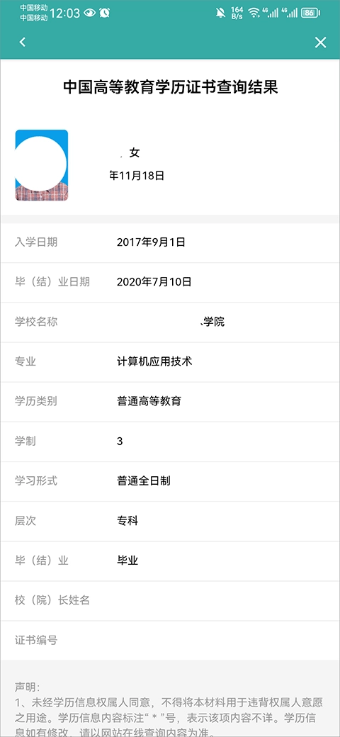 点击免费查询按钮后,系统会对您的手机号码进行验证,验证通过即可查看学历查询结果。