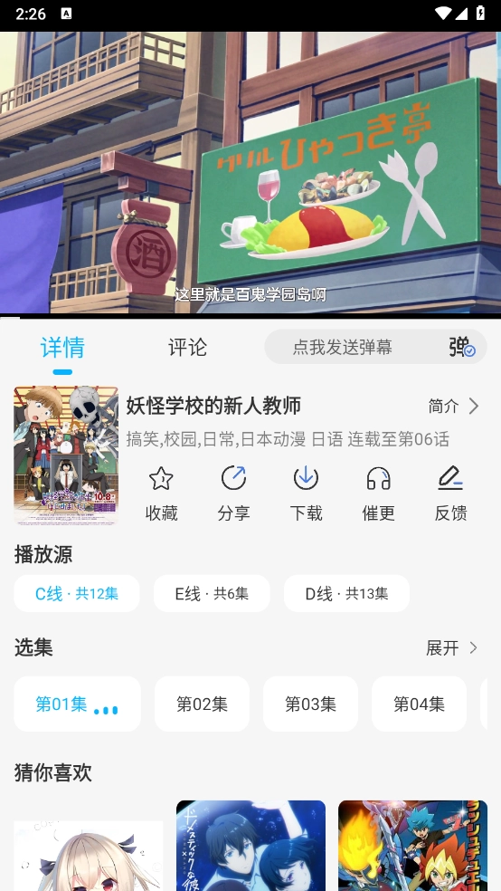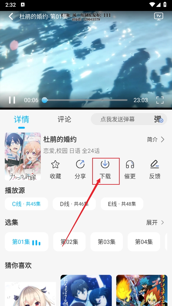进入动漫详情页,点击播放屏幕呼出菜单。