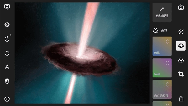 色彩:在色彩类别中,调整工具的主要作用是对画面色彩进行调整,具体包含色温、色调、自然饱和度以及饱和度这四个可调节的选项。