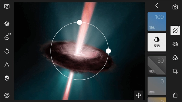 通过圆形调整功能,我们能够对画面的特定区域进行选择性调整,以此达成更精准细致的画面优化效果。在创建一个新的圆形调整时,界面里会生成一个圆形标记,圆形标记外部的区域会响应我们所设置的调整参数,而圆形标记内部的区域则不会受到这些调整参数的作用。