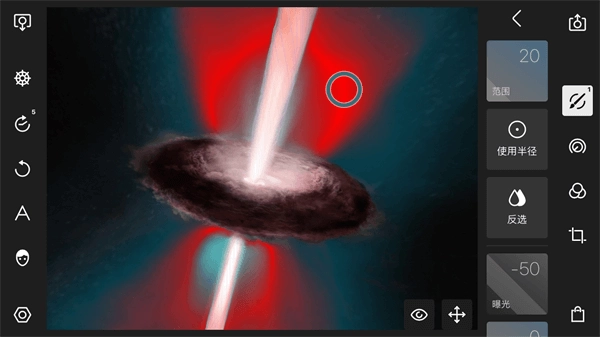 借助笔刷功能,能够手动描绘出需要调整的区域,所有调整操作都仅对这些区域生效。在选择笔刷工具后,可用手指画出一片区域,绘制时会出现红色的标记区域,这些红色区域即为被选定的调整范围。