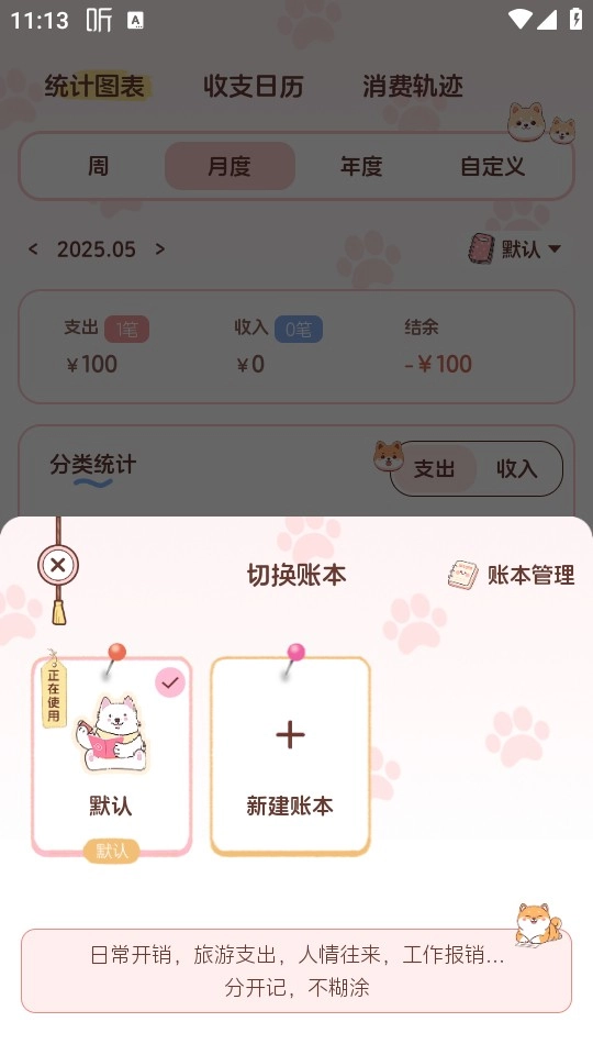 如果有多个账本的需求,比如想把日常开销和旅行费用分开记录,系统也支持自定义创建账本。