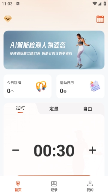 定时、定量,自由三种锻炼模式开启AI跳绳新方式
