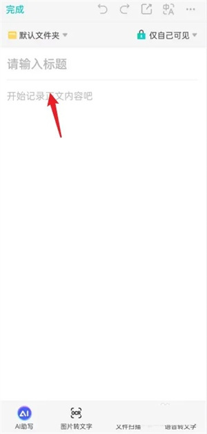 在新建文档页面,输入标题与内容后,点击【完成】按钮就可以了。