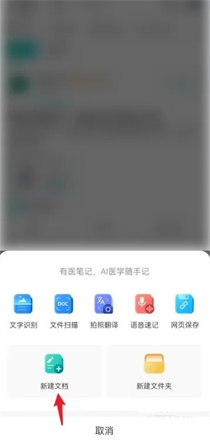 在弹窗页面,点击【新建文档】功能。