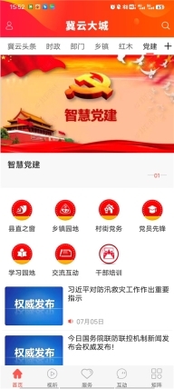 进入软件后,点击首页,这里为用户呈现时政、部门、乡镇、党建等各类最新资讯。