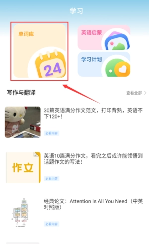 点击红框单词库,查看24天学习计划内容。
