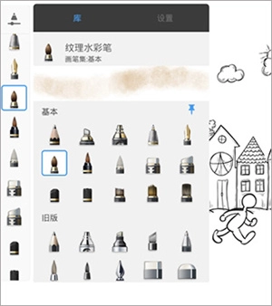 完整的画笔库,100 多种预设铅笔、钢笔、画笔和马克笔