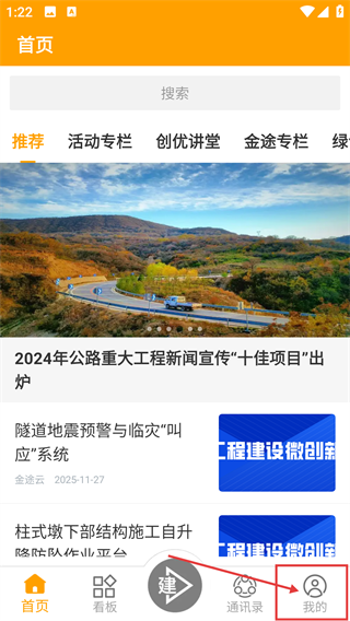 在首页底部的导航栏中点击【我的】选项,就能进入个人中心页面,在那里可以找到登录或者注册的入口。这个应用主要专注于工程建设领域的资讯和相关服务。