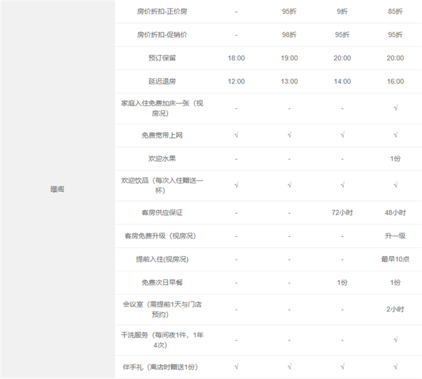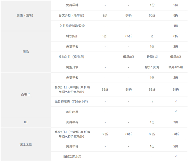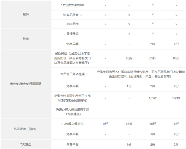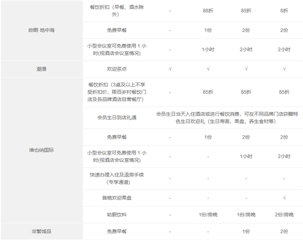 客房免费升级权益(仅适用于权益明细中列明该权益的品牌),需根据客房实际状况并由成员酒店判定是否提供,且仅面向已办理登记入住的会员宾客。