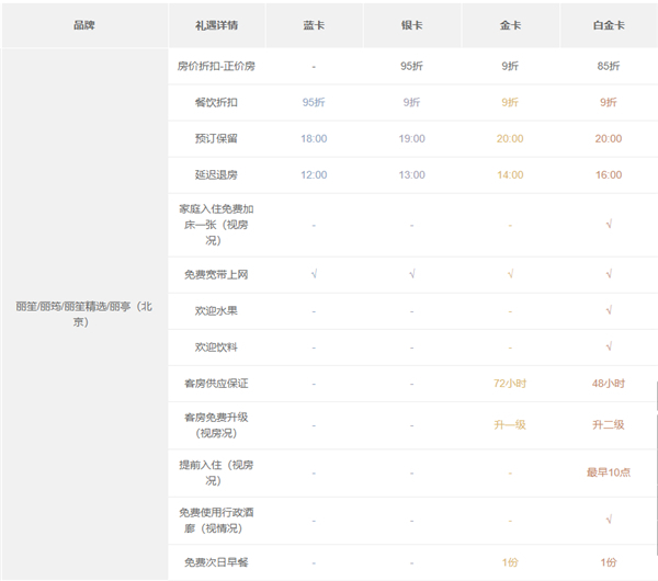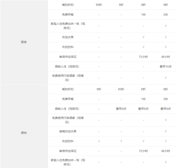 丽笙中国旗下酒店权益说明(涵盖丽笙精选、丽笙、丽筠及北京丽亭酒店)