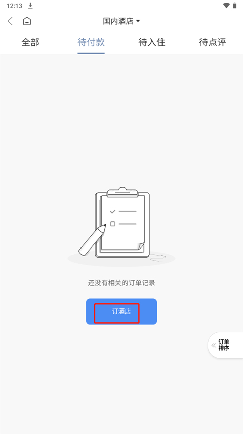在到付款中点击订酒店;