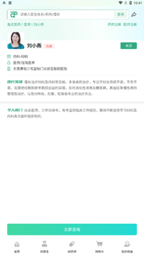 点击头像可查看医师详情,点击“立刻咨询”即可开始询问