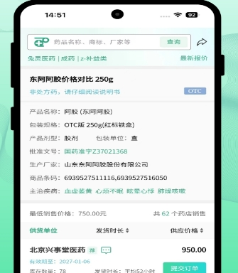 最后,点击药品详情界面里的“提交需求”按钮,就能完成买药操作了。