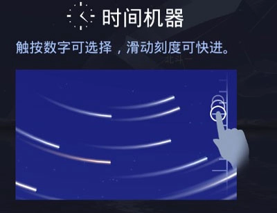 手动选择年、月、日、时,通过滑动刻度来增减选中的数字,就能查看过去或未来的星空景象。