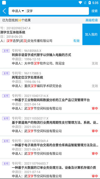 【专利管理】 为企业、高校、事业单位以及个人提供专利管理相关功能;支持查询专利法律状态、申请进度、著录信息等内容。