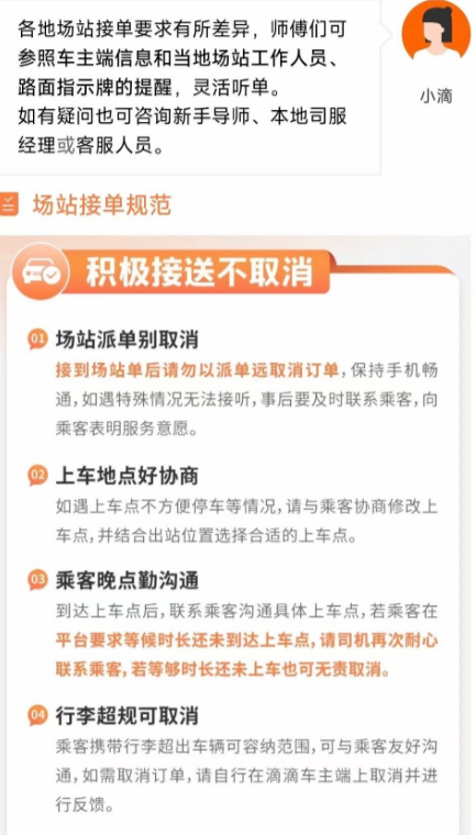 为契合场站听单新规则,派单将以等单时长、口碑值、送站服务质量作为依据,并严格管控作弊行为。